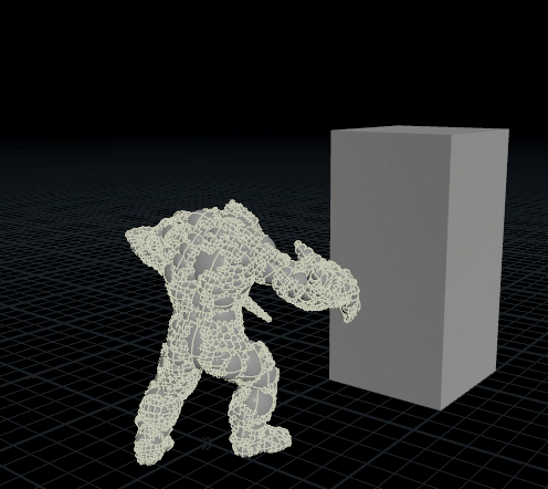 결과를 보면 팔이 휘둘러지며 경로를 남기고 그 경로에 의해 Box에 비는 부분 없이 충돌하는 것을 볼 수 있다.