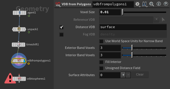 그 다음 VDB from Polygons로 SDF 볼륨 정보로 변환해주겠다.