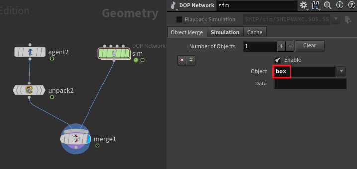 Dop Network 안에서는 Glue Constraint Relationship으로 고정되도록 해주었다.