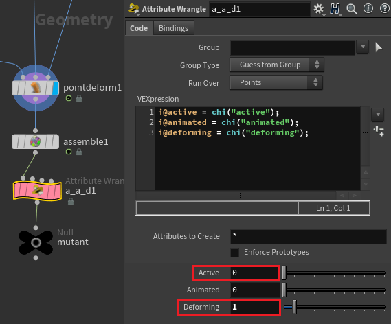 이때 Sphere가 Simulation에서의 영향을 받지 않길 원하기에 @active 값은 0으로 잡아주겠다. 그리고 움직임을 따라가도록 @deforming 값은 1로 해주겠다.