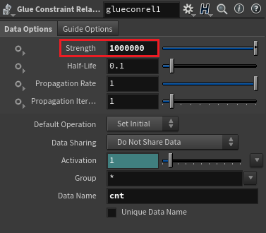 현재 Glue Constraint의 Strength 값은 기본값인 10000으로 지정되어 있다.